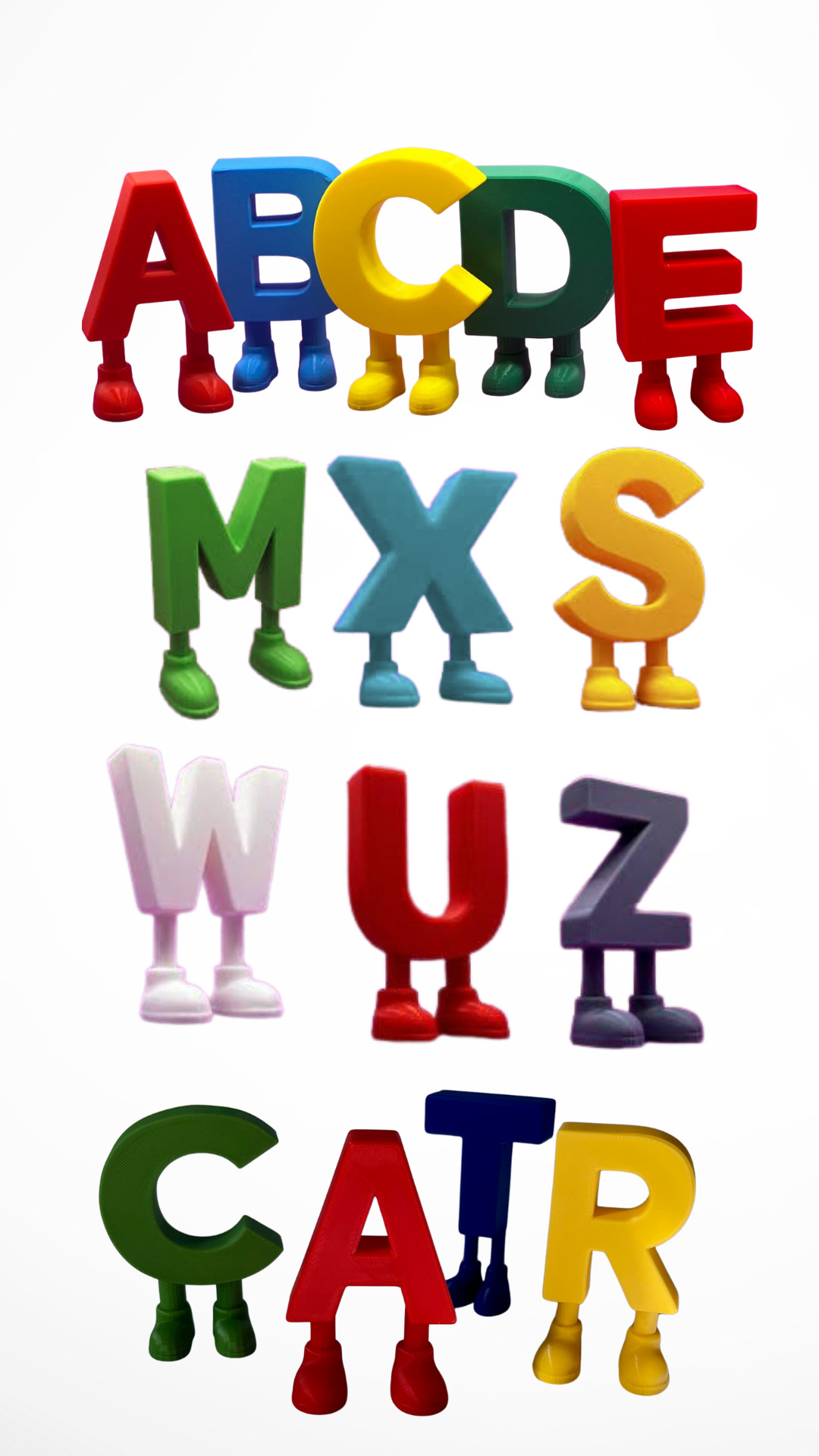 From A to Z, the alphabet comes alive, each letter standing tall on its own little legs. Bright, playful, and full of character, these letters march across the table, ready to make learning an adventure.